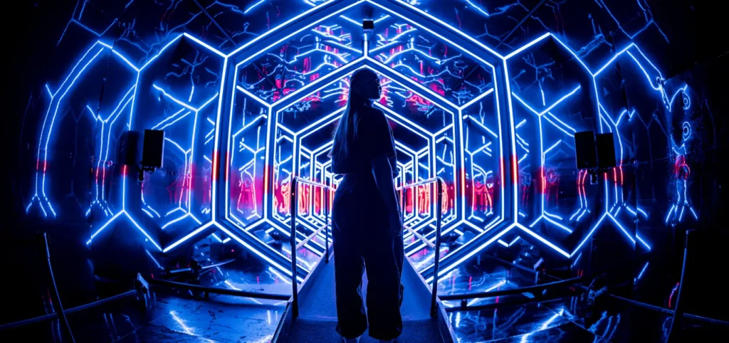 Unlike a traditional museum where you stare at a frame, here, the art crawls up the walls (and you). You will spend the whole show feeling the music vibrate and compelled by the movement of the artworks. It’s really a place where you step into the art, cliche, I know, but true!.