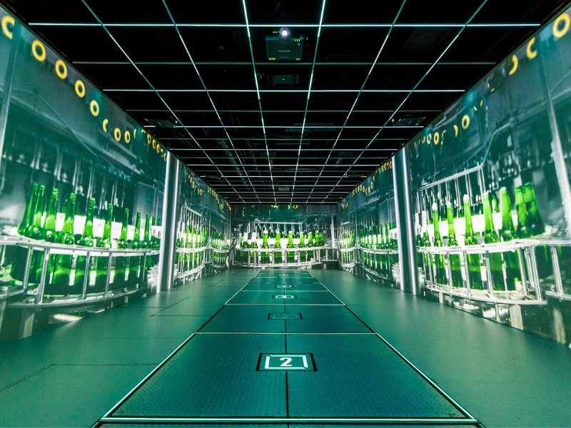 Then, you step into the immersive and interactive part of the experience. The first rooms simulate the brewing and bottling process, you will see and feel the motions of being a Heineken beer and at the end you will get a taste of the world-known beer.